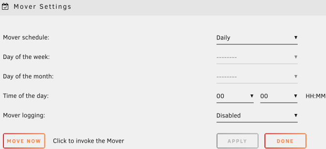 在SETTINGS > Scheduler > Mover Settings,如果有配置緩存盤,可以設置定期將數據轉移到陣列或緩存盤(視乎文件夾在SHARES的設定)。