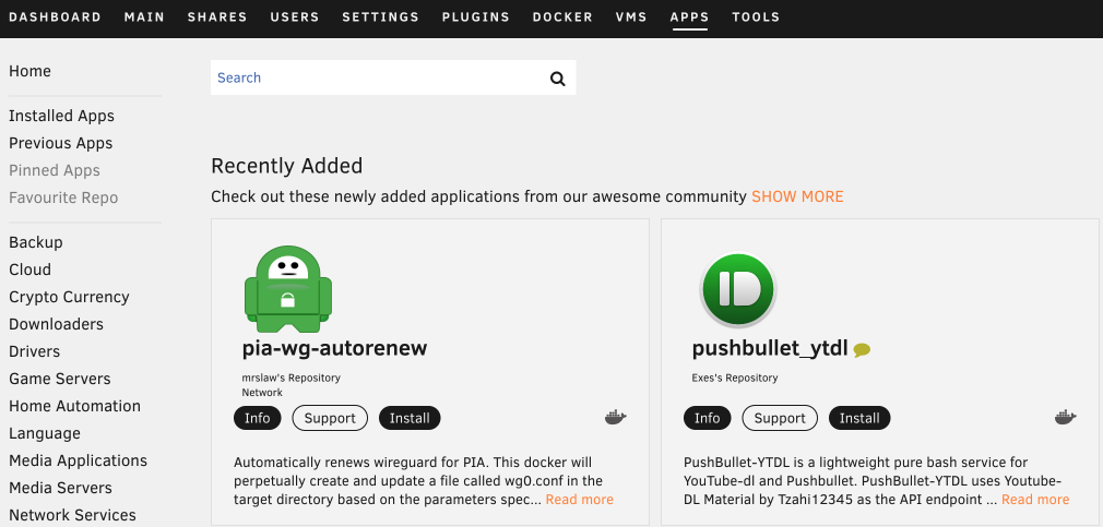 Unraid應用市場十分活躍,至今已經有1800多個Docker和Plugin。