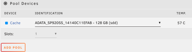 在MAIN > Pool Devices,選擇速度快的SSD作為緩存盤。