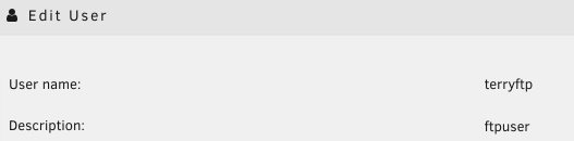 新建User,輸入用戶名和密碼,Description必須填“ftpuser”。