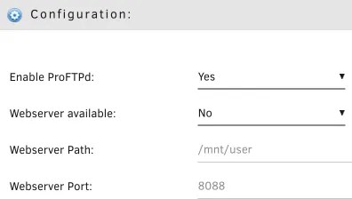 在Unraid應用市場搜索“ProFTPd”並安裝完成後,在SETTING可以配置。開啟ProFTDd服務,其設定默認即可。