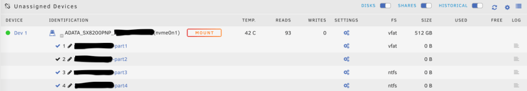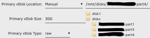 Mount成功後,vDisk Location選Manual,並可在/mnt/disks/選擇該硬盤和實現硬盤直通。