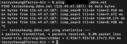 建立完成後,在終端Ping測確定服務已經啟用。