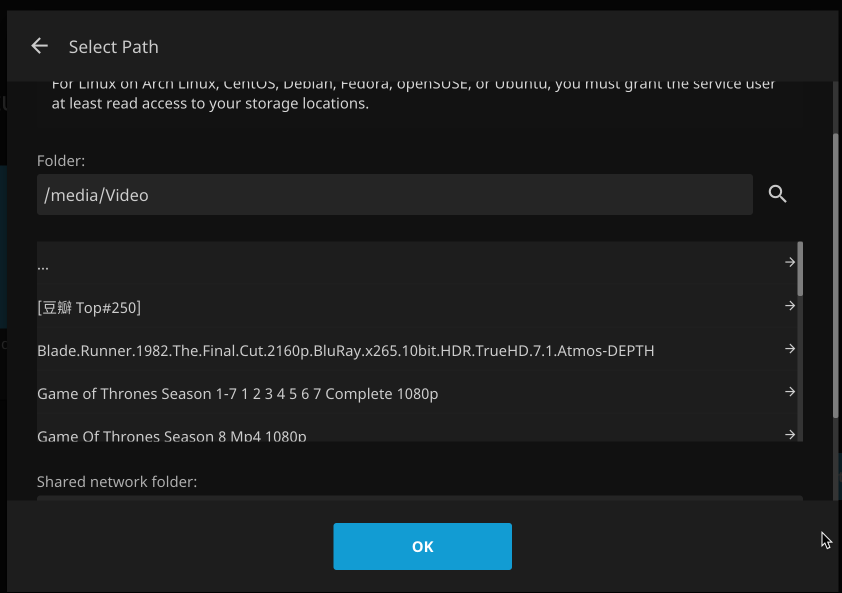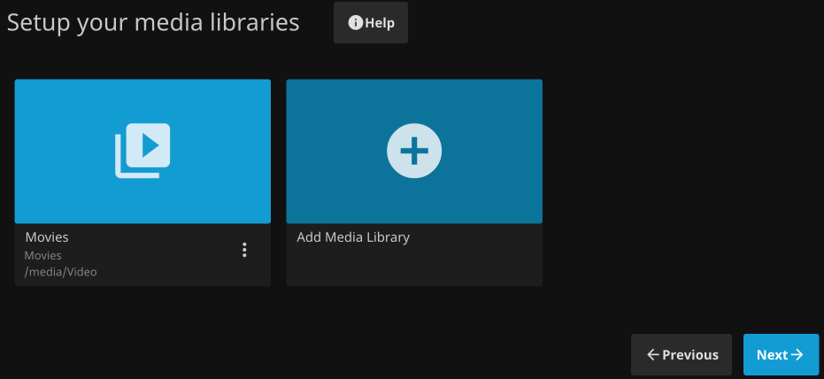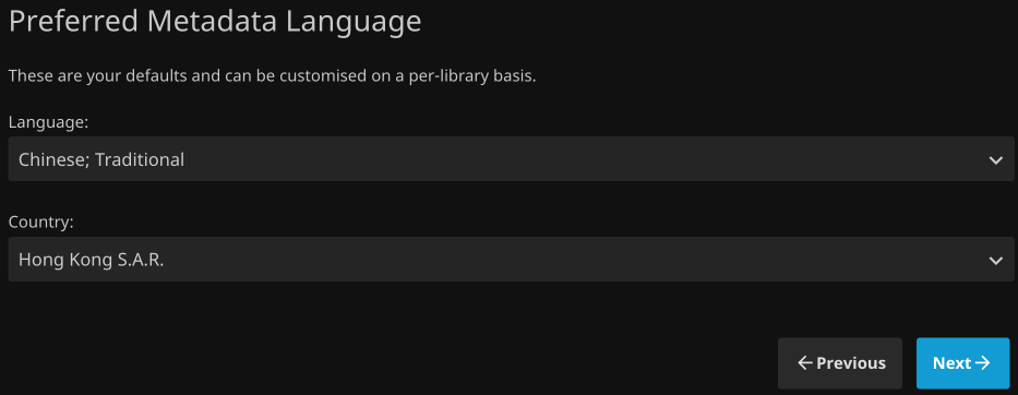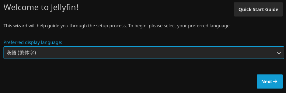 第一次登錄Jellyfin需要設置登錄密碼和指定Media Library,注意這裡的Media Library就是你指定影片和音樂的地方。跟著嚮導一步步配置即可。